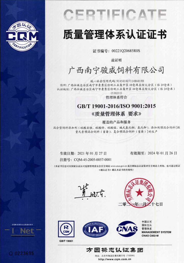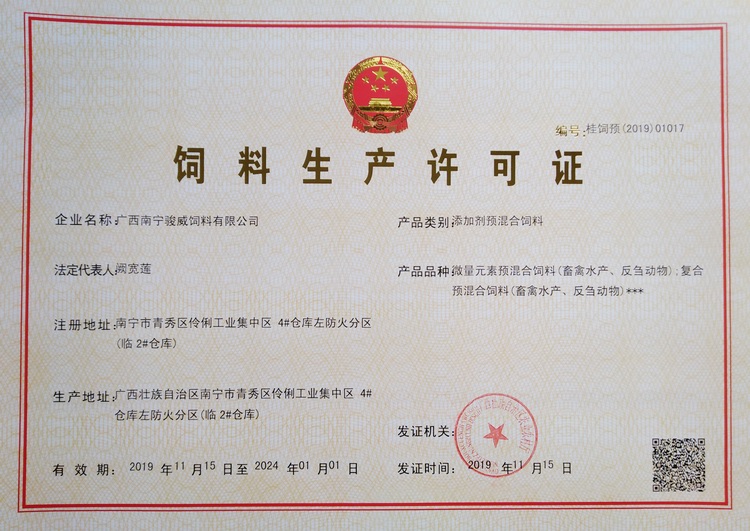 駿威—添加劑預(yù)混合飼料生產(chǎn)許可證